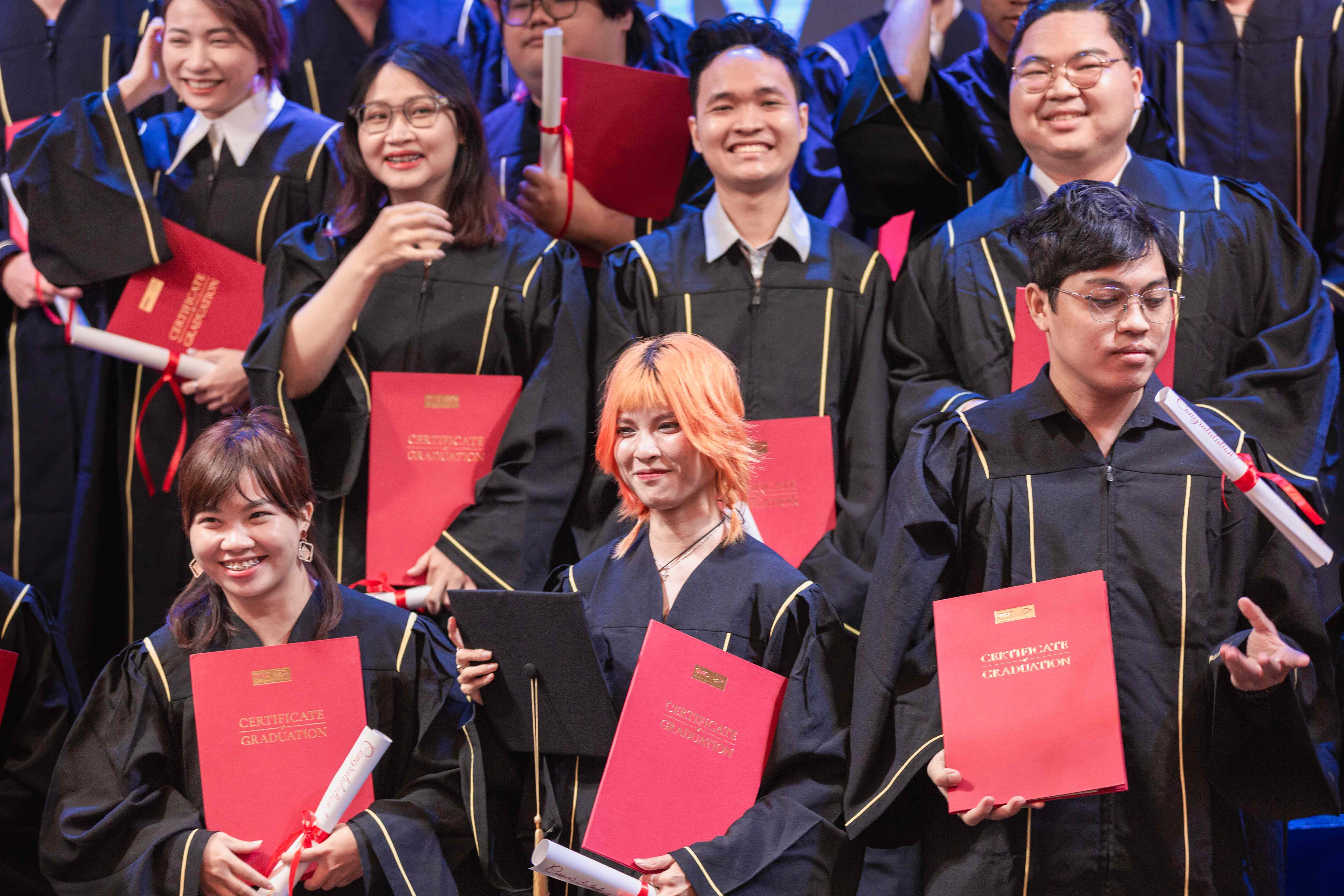 Hành trình dài 2 năm đầy cảm xúc khép lại bằng khoảnh khắc các bạn ngẩng cao đầu bước đến bục vinh quang và nhận tấm bằng tốt nghiệp trước sự chứng kiến của các đơn vị studio trong ngành, sự tán dương của các thầy cô và sự tự hào không ngớt của cha mẹ.