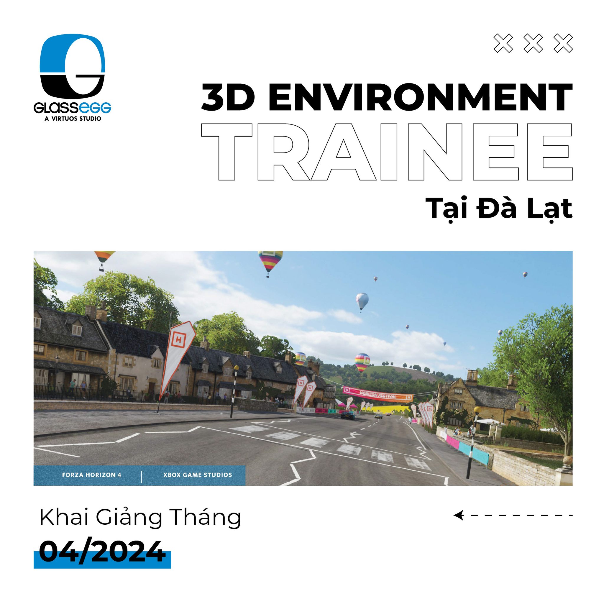 Cơ hội nghề nghiệp và đào tạo tại Glass Egg vẫn hấp dẫn đối với cộng đồng yêu game như ngày nào. Mở bát năm mới, nhà Trứng thông báo đào tạo lớp 3D Vehicle Trainee khai giảng vào tháng 2 tại TP.HCM và 3D Environment Trainee khai giảng vào tháng 4 tại thành phố Đà Lạt. Ngoài ra, Glass Egg cũng không quên hoạt động trau dồi kỹ năng cho đội ngũ nhân viên thông qua lớp English Training được triển khai bởi hai giáo viên nội bộ của studio.
