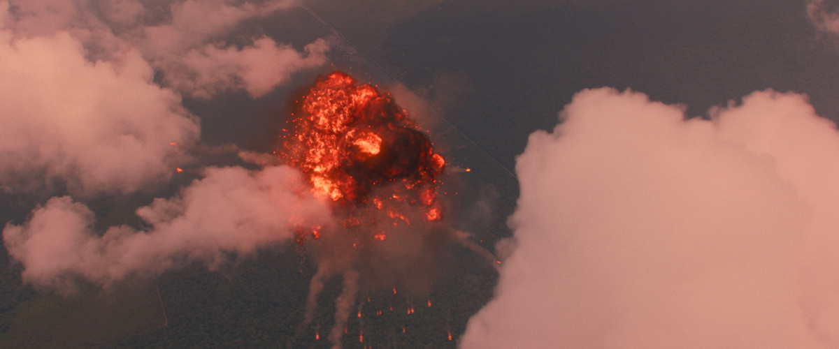 Val thực hiện các chi tiết trong CG rất tốt. Trên thực tế, một trong những bản dựng thử nghiệm của Val đã vượt xa khỏi một bản demo tổng thể để mô phỏng cách vụ nổ trông như thế nào. Khi xem bản dựng thử nghiệm đó, tôi chợt nảy ra ý tưởng, tôi mang chúng cho Mike xem và gợi ý với anh ấy cách chúng tôi sẽ kết hợp điều này vào cảnh quay mới. Chúng tôi nghiên cứu các cảnh bay không sử dụng trước đó để tái sử dụng làm cảnh quay POV (cảnh quay dưới góc nhìn chủ quan) mô phỏng các hiệu ứng phá hủy. Ban đầu, chúng tôi có một cảnh quay POV với mô hình thu nhỏ khác nhưng do khâu hậu cần và tai nạn đáng tiếc trong quá trình vận chuyển đã khiến cho cảnh POV mô phỏng mới trở thành giải pháp hiệu quả hơn.
