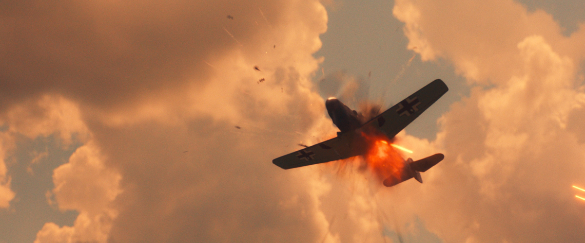 Ryan Urban: Chúng tôi đã thử đủ mọi cách cho cảnh quay này. May mắn là lịch trình của nhóm chúng tôi được đồng bộ hóa với lịch làm việc của Val Kharitonashvili – FX Artist cấp cao. Anh ấy đảm nhiệm công việc xử lý kỹ xảo cho phân cảnh của chiếc B-17.