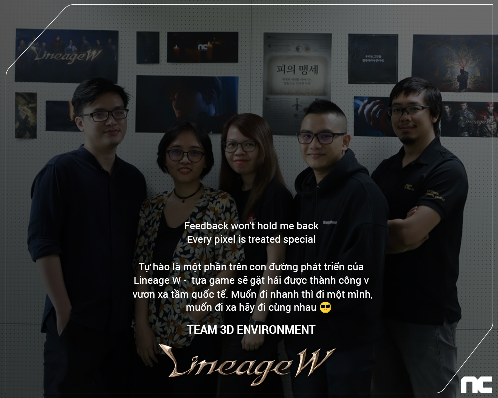 Là một phần của LINEAGE W bên cạnh hàng trăm Artist khác của NCSOFT toàn cầu; được biết, đội ngũ NCSOFT Vietnam đã tham gia vào các phần sản xuất Animation, VFX, thiết kế nhân vật 3D, thiết kế môi trường 3D, v.v… Với sự thành công của LINEAGE trên bản đồ Games thế giới, NCSOFT Vietnam góp phần khẳng định tài năng của các Artist Việt trên hành trình ghi tên mình vào các dự án đẳng cấp quốc tế.